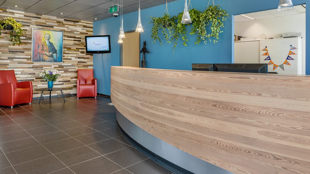 Samen met de interieurarchitect van Kempas en de facilitair managers van Kuijpers ontwikkelden we een maatwerk receptiebalie die past bij de huisstijl van Kuijpers en de wensen van de medewerkers die er dagelijks gebruik van maken.